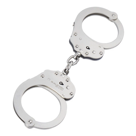 Kajdanki firmy Alcyon wykonane ze stali K-70 z podwójnym ryglowaniem, o szlifowanej i gładkiej krawędzi. Posiadają klasyczne łączenie w postaci dwóch ogniw łańcucha. Takie rozwiązanie znane jest wśród większości służb mundurowych oraz agencji ochrony. Obejma posiada linię zębatek, która wchodzi w korpus kajdan, gdzie znajdują się cztery rzędy zębów, dające łącznie 22 pozycji blokowania położenia.