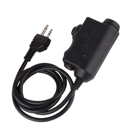 Moduł PTT Military M51 do zestawów słuchawkowych marki Earmor i podobnych, wyposażonych we wtyczkę NATO. Pasuje do radiotelefonów z wtykiem Midland.