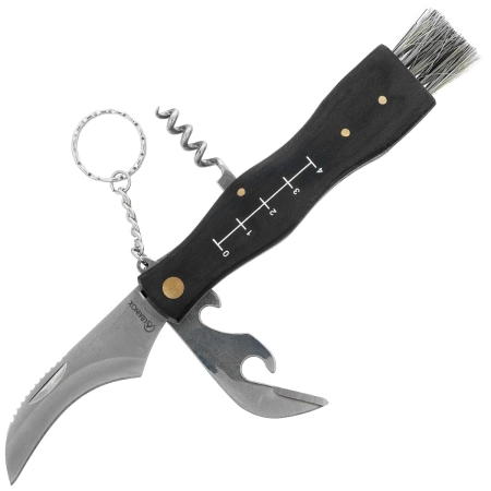 - Setera Multi Madera Wood, Satin wielofunkcyjny nóż grzybiarski od Martinez Albainox z zakrzywioną głownią ze stali 3Cr13MoV, rękojeścią z drewna, szczoteczką, pęsetą, otwieraczem do puszek i butelek, korkociągiem, kółkiem na klucze. Praktyczny i przydatny
