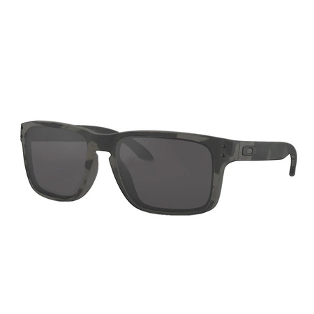 Ochronne okulary przeciwsłoneczne Oakley SI Holbrook™ z oprawką w licencjonowanym kamuflażu MultiCam Black™ oraz przyciemnianymi szkłami Grey.