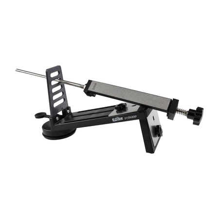 THE EDGE proSHARP 10-30° to diamentowy system ostrzący, który skonstruowano w celu zapewniania pełnej kontroli, wygody, oraz prawidłowego procesu ostrzenia. Ostrzałkę wyposażono w 3 płytki diamentowe, prowadnice z regulacją kąta w zakresie 10-30° oraz stabilną podstawę z przyssawką. Umożliwia ostrzenie noży edc, kuchennych, myśliwskich i survivalowych o najwyższym stopniu hartowania.