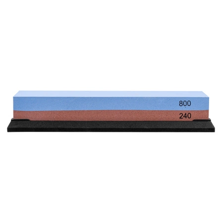 THE EDGE stone SHARP 240/800 to dwustronny kamień wodny z korundu do wstępnego ostrzenia i polerowania. Kamień ma dwie gradacje tj. fine 240 (pomarańczową) przeznaczoną do naprawy i wstępnego szlifowania oraz fine 800 (błękitną do ostrzenia właściwego oraz szybkiego podostrzania lekko stępionych narzędzi. Gradacje 240 i 800 świetnie sprawdzą się do ostrzenia noży i narzędzi outdooorwych. Duża powierzchnia (180×60 mm) sprawia, że na kamieniu możemy komfortowo ostrzyć także duże narzędzia np. siekiery, maczety.