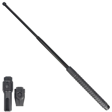 Hartowana pałka teleskopowa o długości 26 cali typu Friction Loc firmy ESP. Profesjonalny wypinany obrotowy uchwyt (360° Roto) BH-55 wyposażony w mocowanie UBC-5 (Quick Change System). Najdłuższy z modeli o największym zasięgu oraz największej skuteczności uderzeń.