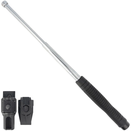 Hartowana 18" pałka teleskopowa typu Friction Loc firmy ESP z rękojeścią Ergonimic. W zestawie z profesjonalnym wypinanym obrotowym uchwytem (360° Roto) BH-54 wyposażonym w mocowanie UBC-5 (Quick Change System). Baton dla użytkowników ceniących skuteczny zasięg, kompaktowy rozmiar oraz ułatwiającą skryte przenoszenie niską wagę. Dla oficerów śledczych, pracowników administracji państwowej, tajnych agentów pracujących po cywilnemu. Wykonany ze stali hartowanej.