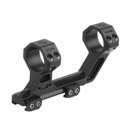 Jednoczęściowy montaż do lunety o tubusie 30 mm, przede wszystkim dla platformy AR od firmy Vector Optics. Jego wydłużona konstrukcja pozwala na zwiększenie odległości oka od okularu lunety. Wykonanie korpusu montażu z frezowanego aluminium 6061-T6 zachowało wysoką sztywnosć co ma kluczowe znaczenie podczas wytrzymywania obciążeń generowanych po wystrzale broni.